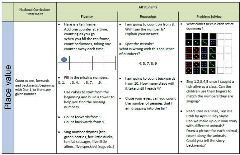 - Promoting the use of a fluency – reasoning – problem solving approach to our planning.
